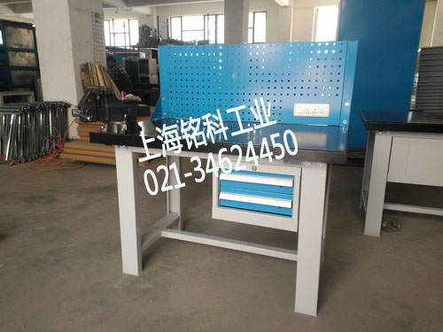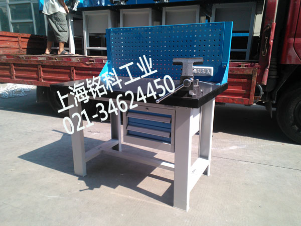 根據(jù)校方提出的使用要求,我公司給校方推薦1200*750*800重型鐵板鉗工桌得到校方的認(rèn)可。此鉗工臺配置為:臺面為50mm厚度鋼板合成臺面,臺面鋼板厚度為6毫米,桌下配411*572*300吊柜一只,抽屜配置為100*2,抽屜內(nèi)標(biāo)配分隔板,分隔槽,單抽屜打開率為:85%,單抽屜載重為80公斤,抽屜導(dǎo)軌為3毫米鋼板沖壓成型。桌上配450mm高度方孔掛板一塊,配工具掛鉤一套。臺鉗為上海滬工牌,鉗口尺寸為6寸。